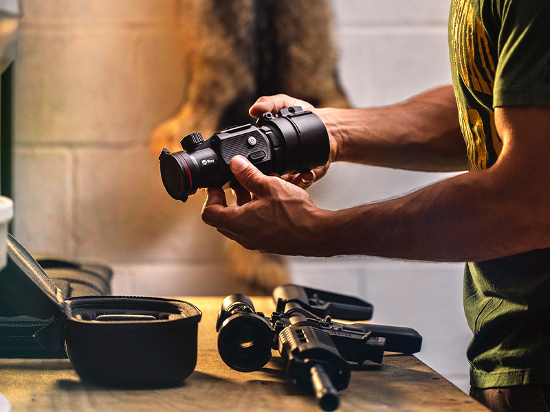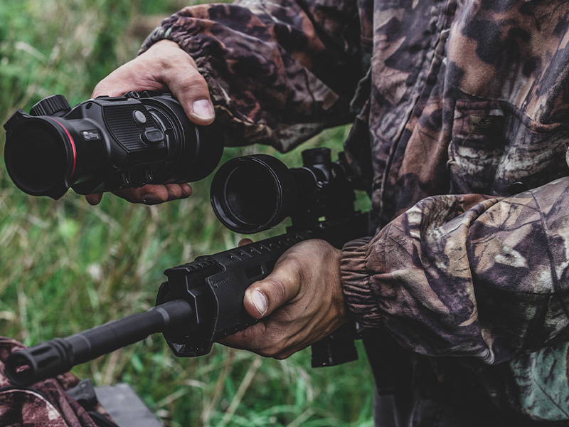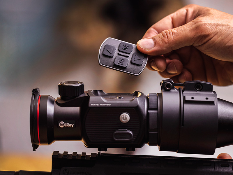 Los botones se pueden mover e instalar en cualquier posición de su rifle. Esto permite a los cazadores controlar el dispositivo fácilmente incluso cuando su atención está en el objetivo. El control remoto cuenta con el respaldo de una solución de consumo de energía ultrabajo y se puede conectar magnéticamente para una carga automática.